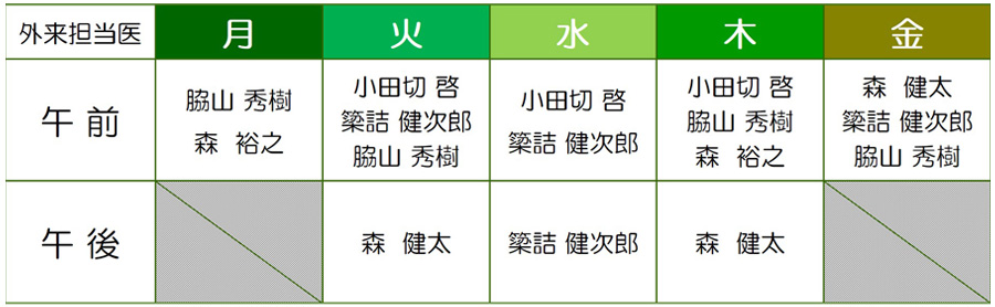 | 外来受付時間 | 8:30~12:00 13:30~16:30 |
